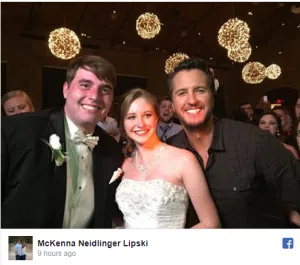The bride and groom are Austin Lipski and McKenna Neidlinger, and their families kept it quiet, so Luke could surprise them on their big day. They had no idea until he walked into the room holding a bottle of champagne