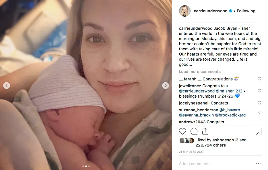 Carrie Underwood & Husband Welcome Baby Boy, Jacob Bryan Fisher
