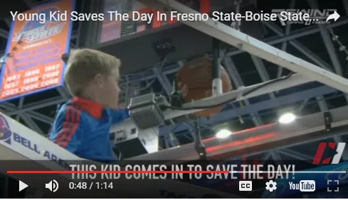 During the Fresno State and Boise State basketball game, the ball landed high above the rim! The players tried everything to get it down, but couldn’t! Thankfully, this little guy came to the re...